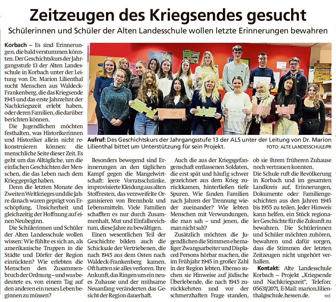 Waldeckische Landeszeitung (WLZ), 12. November 2025