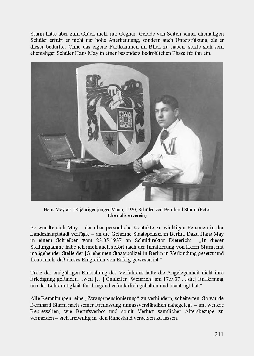 - Schreiben Hans Mays an den Schuldirektor des Landesgymnasiums vom 23.05.1937 (Bestand: SchA ALS). Leider wurden die Unterlagen der Geheimen Staatspolizei Berlin gegen Kriegsende systematisch vernichtet, so dass sich keine genauen Belege mehr finden lassen. Vgl. Angabe des Landesarchivs Berlin.