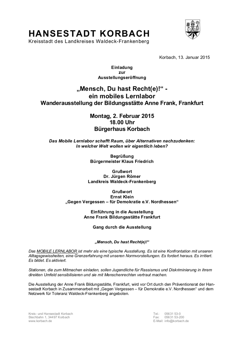 (PDF-Datei) im Jugendhaus Korbach anmelden. Der Besuch der Ausstellung