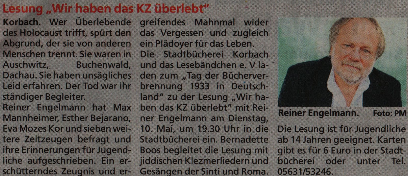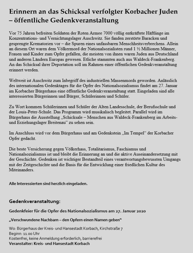 gemeinsam mit dem Jugendhaus Korbach, dem Verein Gegen Vergessen -